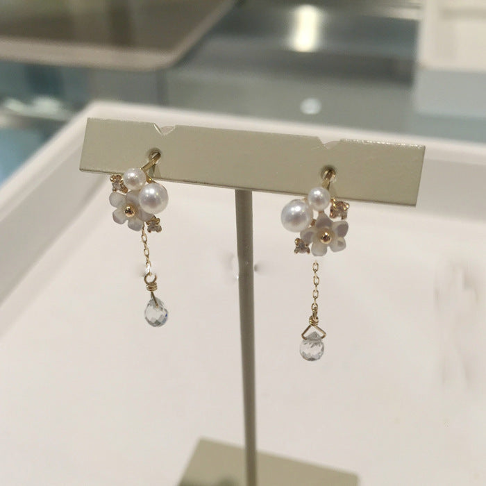 - Material: Sterling silver 925 plating K gold, white shell pearl, diamond crystal
